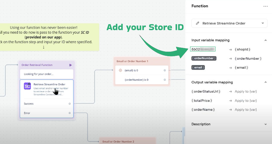 - Once you've cloned the function, simply Click on the 'Retrieve Streamline Order' Block